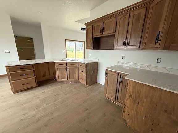 Beautiful quartz countertopCustom windowsCustom-built maple cabinetsElegant crown moldingBeautiful stone accentsFloating vinyl flooring