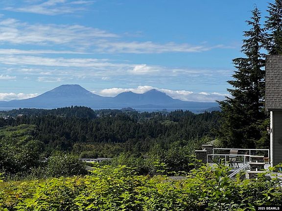 One-of-a-kind Luxury Residence atop Hillside Subdivision! This property can only be described as privacy-abundant, with over an acre of land and 180-degree unobstructed views of Sitka’s volcano, town, mountain, and marine landscape. Easily access all three stories with the internal elevator system. Bask in morning sunlight from the fully enclosed tiled sunroom or relax in the sunset glow from the oversized open Trex deck. Specialty-shaped living room picture windows stretch up to the tongue-and-groove vaulted ceilings with Roman archways and recessed LEDs. The granite countertops, large pantry, counter-height bar, breakfast nook, and high-end, stainless-steel appliances are a chef’s dream, including built-in dual ovens and warmer, propane stove, and oversized double-door fridge. The main floor also offers a formal dining area, office, half bath, and laundry room attached to the primary walk-in closet. The primary suite provides a vaulted ceiling, marine views, a sitting area, and an ensuite with a tile shower, double sink vanity, and jetted soaking tub. The third story boasts a second primary with an ensuite, plus two guest bedrooms, complete with four closets and jack and jill bathroom, plus a bonus room perfect for home gym equipment or private lounging. Use the turn-key studio vacation rental ADU to generate income or keep the layout open for additional living space. There’s more than enough room to keep your vehicles warm in the three-bay heated garage, with convenient access to the full-size processing room with commercial sinks and a walk-in freezer. This home is built to protect its occupants with a home security system, auxiliary heat and power propane generator, and a discreet, secure storage room. Exterior amenities include a covered gazebo, fire pit, lawn and garden area, tons of parking, and a fully enclosed metal-fenced pet yard along the wooded backside of the property. Come experience Sitka at its finest with this gorgeous, top-of-the-world oasis! For those seeking further development opportunities, the owner’s ±1.12 acre lot next door is also on the market.