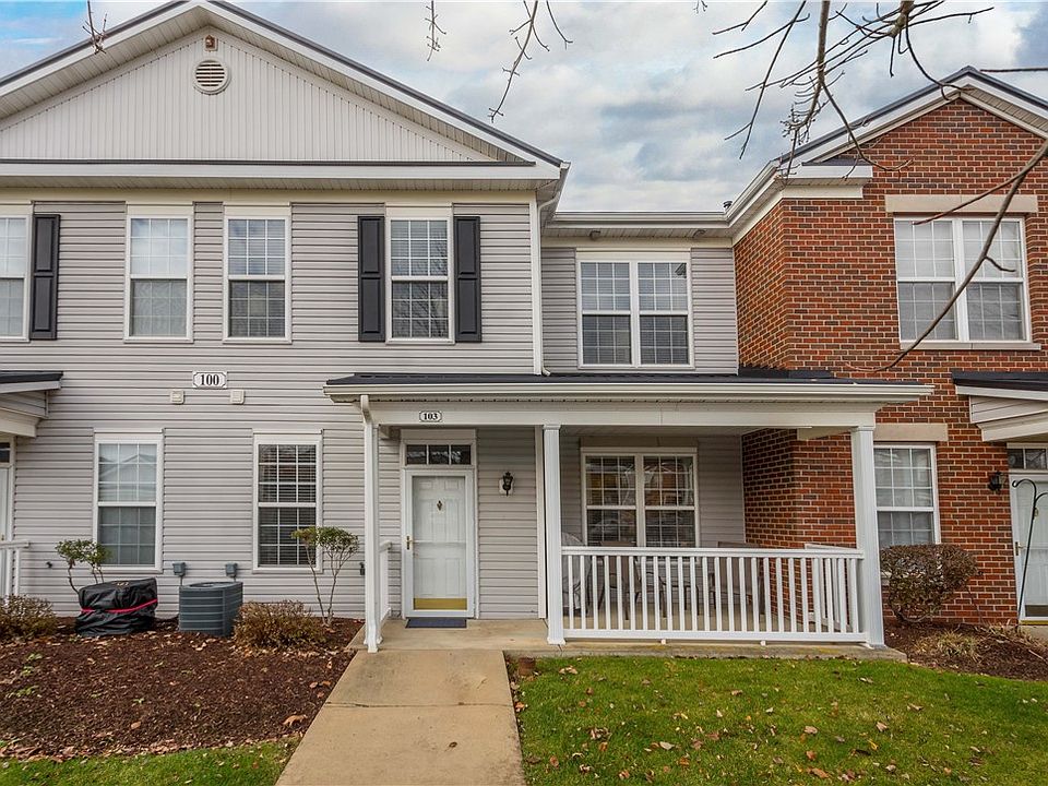 Located in gated community of The Village of Sewickley Hills, this 2 bedroom, 2.5 bathroom condo was purchased as a shell from the original builder and custom finished by the current owners. With upgraded finishes throughout, 103 Sonie Drive is a standout, completely turn-key unit. The kitchen features quartz countertops, extended height white shaker cabinets, and stainless steel Whirlpool and Kitchenaid appliances. The slate-like ceramic tile that spans the length of the eat-in kitchen flows into the conveniently attached first floor laundry and storage room. The living space is generously-sized and boasts a gas fireplace, crown moulding, and custom window treatments. Upstairs you'll find two large bedrooms, each with its own bathroom - complete with extra long quartz vanities - and walk-in closet. The clubhouse is well appointed and features a party room, fitness center, and theatre room + a pool! Garage parking, no stairs into the home. Convenient to 79 and 279, airport, & downtown!