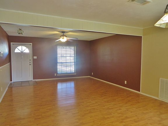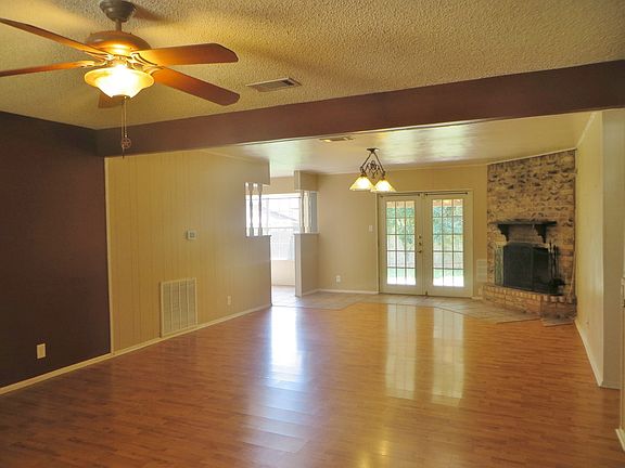 A great 3 bedroom, 2 bathroom Georgetown Home! The covered front porch leads you into the home with it's entry closet and spacious living room featuring a brick fireplace and mantle as well as French Door entry onto the covered back patio and fenced in back yard with plenty of shade. In the left wing of the home you will find the breakfast area and kitchen with tiled counter tops and back splash, plentiful cabinetry and a great view of the back yard as well as the laundry/utility room with cabinets and storage and entry into the 2 car garage which offers storage cabinets, work space and a separate entry into the back yard. The right wing of the home provides a bathroom with tiled vanity counter, tiled shower and linen cabinets, a hall linen/storage closet, 2 bedrooms and the main suite with double closets, tiled vanity counter top and tiled walk-in shower.