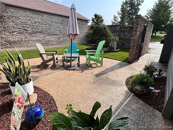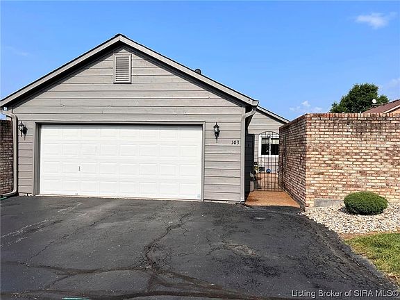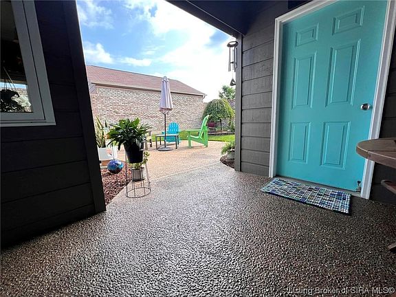 Spaulding Square in Scottsburg. New paint throughout including doors and trim, New Windows, & Sliding Glass Door (which have a lifetime guarantee), New kitchen includes Sink and faucet, Amish cabinets refinished, added cabinet hardware, Kitchen Aide French Door refrigerator stays in Stainless steel, along with new double oven stove. All electrical switches and outlets replaced. Air Conditioning newer, New sink & faucet in Owners suite, New Toilets in both bathrooms. New ceiling fans and LED lighting, Ceiling fans, vanity in guest bath. All draperies stay. Some furniture can be purchased separately. Living room has built in cabinets that surround the gas fireplace with hearth. 2 car garage with insulated door and opener.