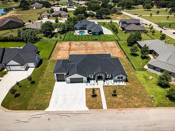 This lovely home is located behind the gates of the Legends on Lake LBJ golf course community. This new construction home features 2,852 square feet on more than 1/2acre, 4 bedrooms, 3 full bathrooms, office with beautiful built-ins, outside kitchen, RV garage, access to the boat ramp in the Marina, and is located on a cul-de-sac. The home is plumbed for a water softener, has a lovely electric fireplace, and a gas cooktop and two electric ovens. There is a 3 car garage with the 3rd serving as a boat/ RV garage. Kitchen has plenty of storage with quartz counters, backsplash, and waterfall island. Laundry room is spacious with a mudroom and room for a second refrigerator. Bedrooms have big closets. Big backyard with room for a pool and still has plenty of green space. Back porch has built-in gas grill. Sprinkler system both front and back yards.