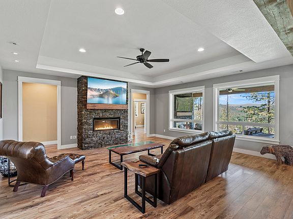 Absolutely stunning Michael Susi quality built home on 15 private acres with panoramic mountain and Rogue River views, minutes from town. This 4 bed + Office 3101 sf home is the epitome of luxury with quality contemporary finishes throughout. Master En-Suite features His and Her private vanities, built in steam sauna, soaking tub, beautiful tiled shower, oversized luxury closet and laundry room exactly where it makes sense. Gorgeous open kitchen with plenty of storage, island with prep sink, private butler's pantry with prep sink, secondary fridge and more. Outside is a finished 3 car garage with attached Legal ADU, currently used as a gym with it's on private bathroom. (kitchen and flooring needed to finish to use as living facilities). Enjoy the peace and quiet on your covered back patio with outdoor entertainment area featuring linear fireplace , TV and fans, koi pond, fenced garden areas, park like setting with your own hiking trails and more. All this AND Amazing Internet
