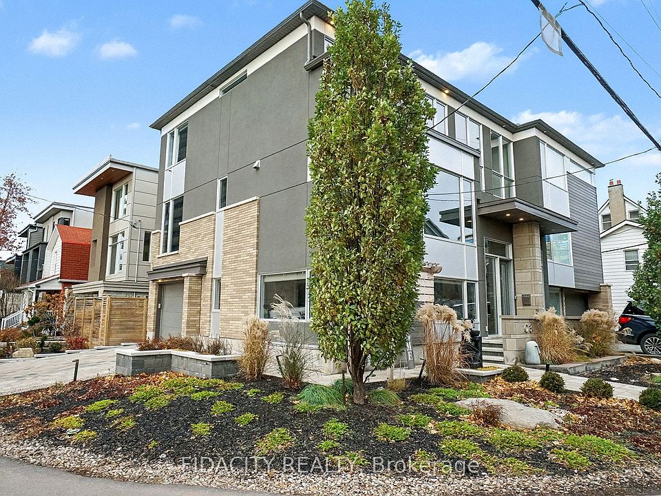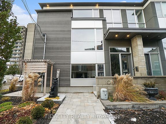 Welcome to 103 Tay Street, a refined modern residence on a corner lot in the heart of Westboro Village-steps from beloved cafés, shops, LRT, and the newly redesigned Westboro Beach. Built by Falsetto Homes, this semi-detached 3 bedroom, 4 bathroom home offers over 2400sqft of thoughtfully designed living space .The ground floor features expansive windows, full bathroom, wet bar with wine fridge, a spacious flex area perfect for entertaining or guest use and inside access to the garage with finished epoxy flooring.The entire level includes radiant in-floor heating for added comfort. Upstairs, natural light fills the impressive gourmet kitchen, complete with a waterfall-edge island with seating for 4, built-in high-end appliances including a Fisher & Paykel fridge, and floating cabinetry and shelving that sets this space apart.The kitchen overlooks the large living and dining areas, the layout allows for a large dining table and comfortable seating for all your hosting needs. Living room features a sleek gas fireplace and direct access to the private backyard. A dedicated office, pantry, and powder room round out the floor.The upper level offers a laundry room, three generous bedrooms (with custom dymon storage closets) & two full bathrooms.The primary suite includes a walk-in closet with recessed walnut drawers, a luxurious 4-piece ensuite with glass shower with dual shower heads, black hardware, double sinks, and an extended vanity with ample storage.The fully fenced yard features an interlock, pergola, natural gas BBQ hookup, dog run, and space for all your outdoor dining & lounging. The front & rear landscaping as well as the driveway have been professionally done for a zero-maintenance lifestyle. Additional features to love include ceramic-coated windows, engineered oak flooring, Hunter Douglas blinds, and parking for three vehicles.103 Tay Street offers luxury, comfort, and an unbeatable location in one of Ottawa's most desirable neighbourhoods-walk score of 93