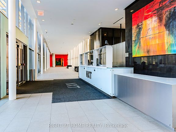 Experience breathtaking panoramic views of the Toronto skyline, CN Tower, Lake Ontario, and High Park from this bright and spacious one-bedroom suite with a coveted SouthEast exposure! Situated in the highly desirable NXT Condos, this modern Condo Apartment is flooded with natural light through floor-to-ceiling windows. The contemporary kitchen boasts stainless steel appliances and a convenient breakfast bar, while the open-concept living and dining area provides plenty of space for relaxing or entertaining. Step out onto the expansive 23' long (111sq.ft) balcony and take in the sweeping city and lake views. Enjoy an array of luxury amenities, including a 24-hour concierge, fully equipped fitness centre, indoor and outdoor pools, party and theatre rooms, guest suites, and an on-site daycare, Tennis Courts and a Convenience Store. Perfectly positioned just steps away from the waterfront boardwalk, bike trails, High Park, Sunnyside Beach and Humber Bay Park. Steps to the TTC "Humber Loop at The Queensway". Easy access to the Gardiner Expressway and all major transportation routes. Enjoy nature in the city in this exceptional community!