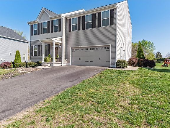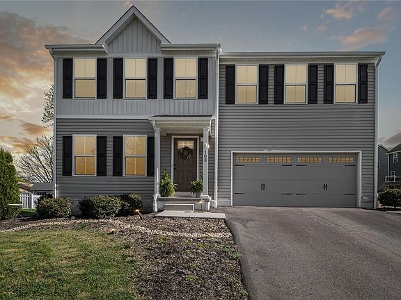 This amazing 4 bedroom Colonial two story has great curb appeal. You'll love the open concept living as you enter the front door with modern electric fireplace. Newer luxury vinyl flooring throughout main floor. Beautiful well appointed kitchen features herringbone backsplash, white shaker cabinetry & large island. From the dining area, view the backyard through the sliding door. Bonus room/den/office and a powder room are also included on the main floor. The laundry is conveniently located on the 2nd floor with the 4 bedrooms. The large primary suite includes an en-suite & walk-in closet. Heated garage with man door. The basement is partially finished, featuring a 27x11 game room ready for your finishing touches, and is also plumbed for a future full bathroom. You'll love the large, level back yard with a newer cement patio/fire pit area, and a play area with play set included. Sprinkler system in front & side yard. Security system. This dream home is ready for you to call your own!