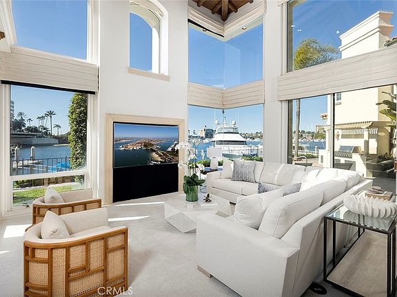 Affording a gracious living experience and an unprecedented combination of square footage and vessel accommodation, 103 Via Lido Soud is a highly prized and rarely presented offering. The bayfront compound with extended bay, multi-channel, Lido Village and city light views along with exceptional attributes includes an uncommon 140 linear feet of water frontage; a sparkling pool and spa, set amidst the generous outdoor living venues; as well as some of the largest private boat dock space in the Newport Harbor – capable of berthing multiple yachts, from 50 to 70 feet and one possibly up to 150’, as well as additional watercraft. The residence was completely rebuilt in 1990 to seamlessly integrate the adjacent property, creating a single contiguous custom estate. The home’s soft Mediterranean aesthetic is complemented by stately scaled rooms; fine finishes and construction quality; and expanses of glass, bathing the interior in natural light, and capturing captivating views of the tranquil turning basin. Comprised of two integral structures – the grand, yet relaxed and livable spaces encompass a sprawling 9500 square feet. The North wing is thoughtfully configured with formal living, dining, and family rooms all with brilliant views; a kitchen; powder bath; private study and library; service quarters; and a lavish second-level primary suite – accessible by elevator – with a fitness and dressing room overlooking the Bay. The South wing, fashioned for large-scale or informal entertaining and relaxation features a massive great room with 22’ ceilings – resplendent with light; an open kitchen and dining area; a theater room with tiered seating; additional office space; a guest powder bath; a second-level primary guest suite with a private balcony and sublime views; and two ancillary guest rooms – both with ensuite baths. The garages are equipped with capacity for up to five cars, along with additional dedicated exterior parking for another five vehicles which is unique to Lido Isle. This remarkable property grants the benefits of extraordinary space; optimal proximity to the region’s finest amenities and multiple international airports; and an unrivaled opportunity for the yacht enthusiast or those seeking an idyllic on-water Southern California lifestyle.