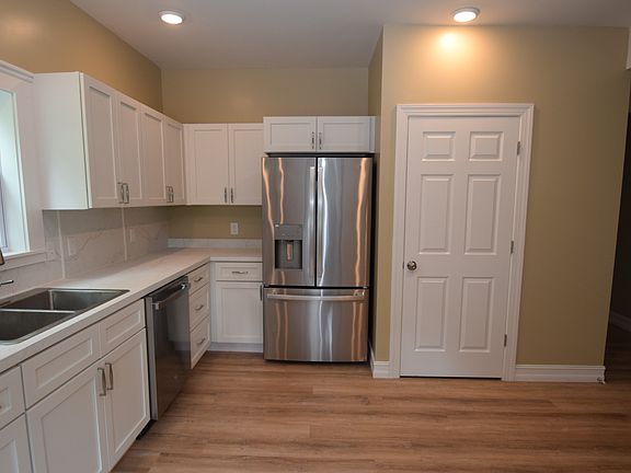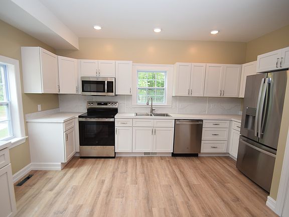 Small town living at its finest. Totally remodeled three bedroom two and a half bath home sitting on three town lots. This house has been reimagined with a new master suite with huge walk-in closet added to the main level. Open concept design with the kitchen and living areas flowing seamlessly together. Low maintenance here with so many updates in the last year including siding, windows, flooring, appliances, mechanicals, wiring. Ample storage space available in the basement. Enjoy your morning coffee or afternoon tea sitting on the covered front porch shaded by mature trees.