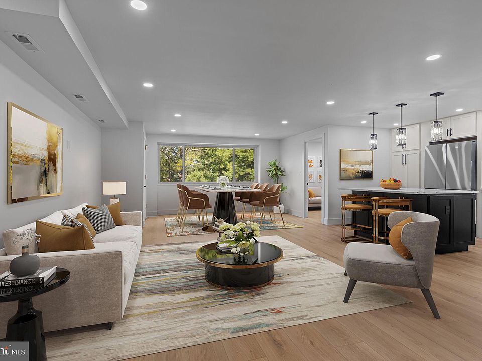 Fully Remodeled Modern 2 Bed + Home Office | 2 Bath | Designer Finishes | Move-In Ready! Welcome to this beautifully reimagined 2-bedroom, 2-bathroom home with a versatile third room—perfect for an office, guest space, or playroom/den. Every inch of this residence has been thoughtfully renovated with contemporary design and high-end upgrades throughout. Step inside to discover brand-new wide plank flooring and abundant natural light and a show-stopping custom kitchen featuring quartz countertops, a generous island, sleek cabinetry, a stylish sliding range and dimmable recessed lighting for customizable ambiance and flexibility. The spa inspired primary ensuite and guest bathrooms include frameless LED mirrors with a Bluetooth-enabled fan and speaker, while heated bidet toilets add everyday luxury. Custom closets provide smart storage solutions. The fully updated electrical and plumbing systems ensure peace of mind for years to come. Enjoy the convenience of an allocated undercover parking space and a private storage area. Located just a short walk to Suburban Square, top-tier dining, boutique shopping, and the train—providing easy access to Philadelphia and NYC. Turnkey, stylish and ideally located-move right in and start living the modern lifestyle you deserve!