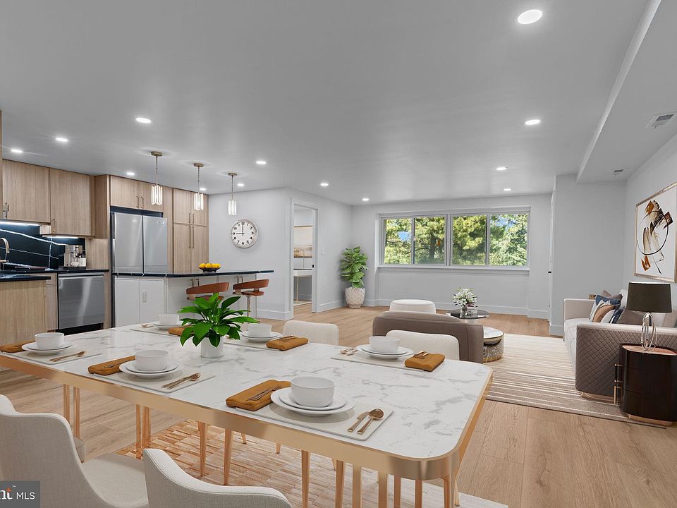 Fully Remodeled Modern 2 Bed + Home Office | 2 Bath | Designer Finishes | Move-In Ready! Welcome to this beautifully reimagined 2-bedroom, 2-bathroom home with a versatile flexible third room—perfect for an office, guest space, or creative studio. Every inch of this residence has been thoughtfully renovated with contemporary design and high-end upgrades throughout. Step inside to discover brand-new wide plank flooring and abundant natural light and a show-stopping custom kitchen featuring quartz countertops, a generous island, sleek cabinetry, a stylish sliding range and dimmable recessed lighting for customizable ambiance and flexibility. The spa inspired primary ensuite and guest bathrooms include frameless LED mirrors with a Bluetooth-enabled fan and speaker, while heated bidet toilets add everyday luxury. Custom closets provide smart storage solutions. The fully updated electrical and plumbing systems ensure peace of mind for years to come. Enjoy the convenience of an allocated undercover parking space and a private storage area. Located just a short walk to Suburban Square, top-tier dining, boutique shopping, and the train—providing easy access to Philadelphia and NYC. Turnkey, stylish and ideally located-move right in and start living the modern lifestyle you deserve!