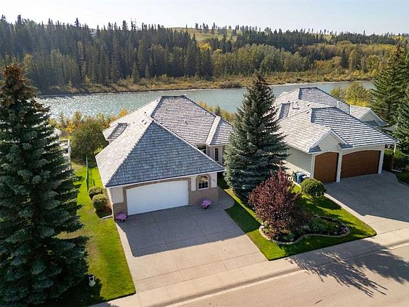 ****OPEN HOUSE Saturday November 01, 2025 and Sunday November 02, 2025 11:00am-1:00pm.****For the first time ever, this beautifully cared-for riverfront bungalow is ready for new owners. Lovingly maintained by its original owner, this home offers a rare blend of comfort, warmth, and connection to nature. Step inside to discover bright, sun-filled spaces designed to capture light all year long. The main level features an inviting flow with a three-sided fireplace, a formal dining room, and a kitchen nook overlooking the yard. The main floor den adds flexibility for work or quiet reading, while the updated ensuite and walk-in closets in every bedroom bring comfort and practicality. Downstairs, the walkout basement opens to a private, gated yard surrounded by mature trees and gardens, and features a brick gas fireplace that makes the space perfect for relaxing or entertaining. With heated floors throughout the basement and ensuite, and central air conditioning, this home offers comfort in every season. Enjoy sunny afternoons on the southwest-facing upper patio with a natural gas line and stairs leading to the yard, just steps from the river. Lovingly cared for as a non-smoking, no-pet home, this bungalow reflects true pride of ownership. A pre-listing home inspection is complete and available for buyer confidence.