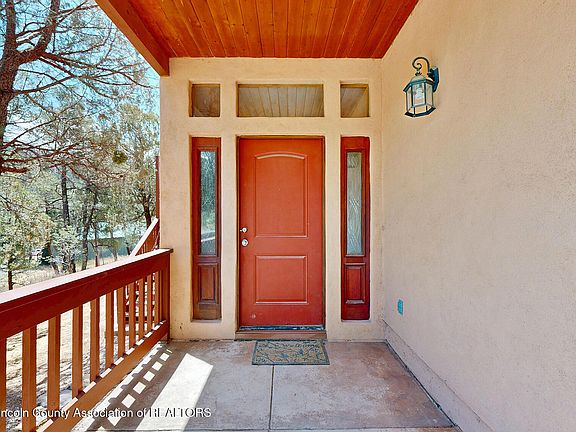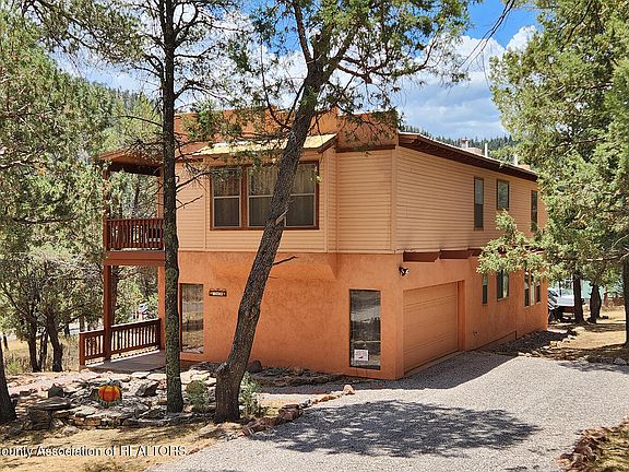Very unique & one of a kind with lots of custom features, lovely, tiled entry flows to gorgeous wood flooring, open living w/FP, high ceilings, enjoy the dining area overlooking living area, great kitchen w/breakfast bar, also. Full guest bath & laundry rm. on main level, 3 bedrooms & 2 baths up plus sitting area at top of stairs, fully furnished as viewed, art & all! Primary suite w/electric FP, spacious bath w/jacuzzi tub, private from other 2 bedrooms & bath, patios around the main level & great covered patio off 2nd bdrm up. So many amenities, must see, custom tile & other art features, stucco, metal roof & double garage. Ready for you to come enjoy the mountains & the wildlife, deer, turkey, elk & our wonderful wild horses! On cul-de-sac & close to town but private, quiet area,