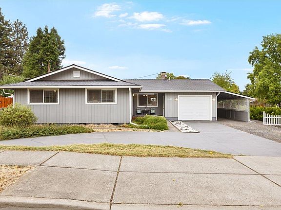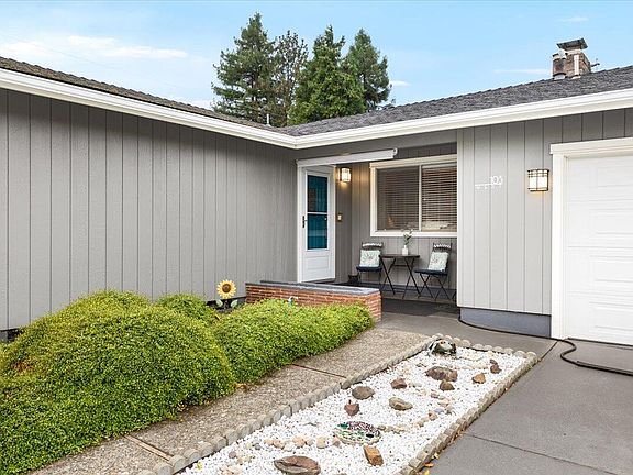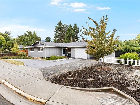 Midcentury style meets modern convenience in this cute ranch home on a sunny corner lot. Warm oak floors and a brick fireplace with clean electric insert create a welcoming impression. The 2020 kitchen remodel, with new flooring, cabinets and appliances, makes cooking a joy. All appliances stay! Retreat to the primary suite with its charming vintage half bath, or refresh in the updated full bath. Work or create in the bonus room with a separate entrance—perfect for your home occupation or hobbies. Outdoors, attractive xeriscaping in the front and side yards mean more time for fun and less yard work. The private fenced backyard invites you to garden, play, or relax beneath the pergola. An attached garage with workbench and carport provide space for vehicles, bikes and more. This home offers the best of small-town living, with style and comfort in a quiet neighborhood near Talent Elementary School and downtown Talent.