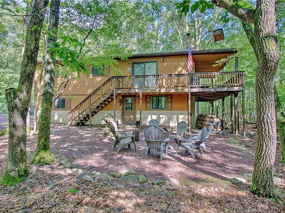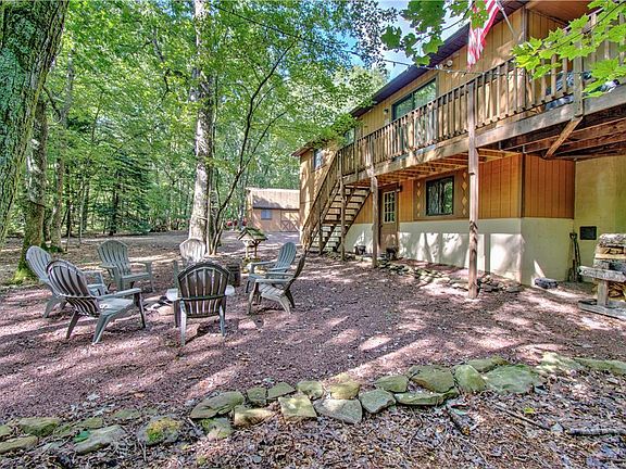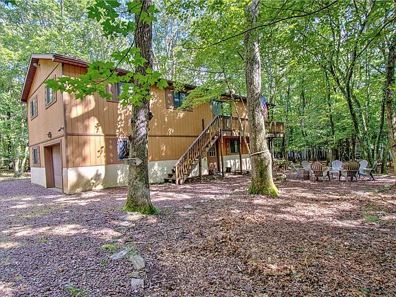 Nestled in the picturesque community of Bear Creek Lakes, this remarkable 4-bedroom, 2-full bath raised ranch offers the epitome of comfortable and quiet mountain living. The spacious floor plan includes a living area accentuated by a cozy fireplace, perfect for winter nights, while the first floor wood stove adds rustic charm and efficient heating. For those hot summer days, central air conditioning ensures year-round comfort. This home is an entertainer's dream with a generously sized covered deck, ideal for al fresco dining and gatherings with family and friends. Two garages provide ample parking and storage space. Additionally, a large two-story shed complements the property, offering even more storage options or potential for a workshop. With four bedrooms, there's room for a growing family or plenty of space for a home office or guest rooms. This house, with its blend of functionality, comfort, and outdoor appeal, represents a unique opportunity to experience the best of Jim Thorpe living in a home that has been lovingly cared for and ready to welcome its next fortunate owners. Home is bing sold mostly furnished.