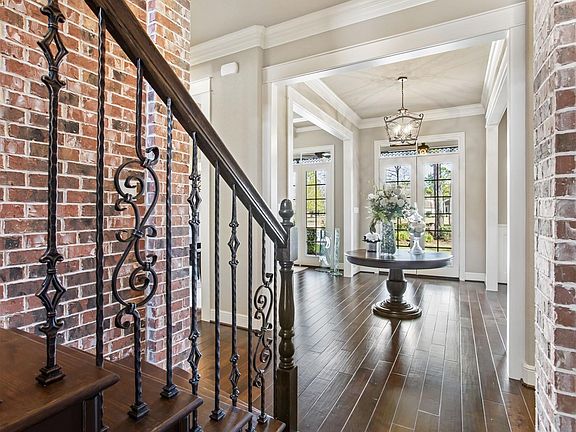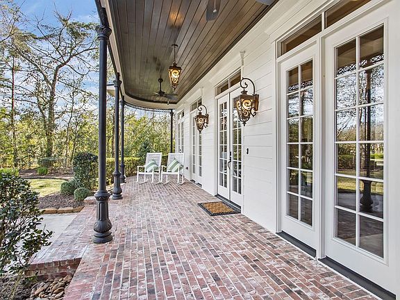 Stately French Traditional custom home with water views in Woodforest gated community! Rich hardwood floors, elegant custom mill work includes pristine coffered ceilings & crown molding. Spectacular views from every room! Chef's kitchen boast Viking gas range/double ovens, built in refrigerator, incredible prep kitchen, & sunny breakfast room. Spacious master retreat features peaceful sitting area, overlooking the lush backyard & pool/spa. Luxurious en-suite with high ceilings, over-sized soaking tub, & custom cabinetry, which extends into walk-in closet. Guests enjoy their own retreat, complete w/seating space & full bath on the main level. Exposed brick encompasses hardwood staircase, accented by elegant wrought iron spindles & lanterns. 3 abundantly sized bedrooms upstairs are accompanied by beautifully en-suite baths. Large gameroom provides endless possibilities for entertaining. Encased French doors offer access to the backyard oasis, 50'x17' pool/spa, outdoor kitchen, & more!
