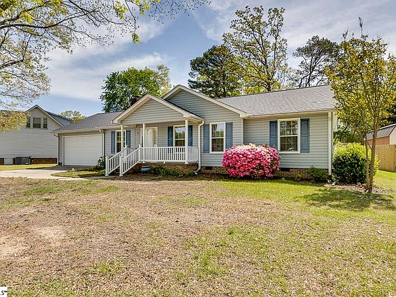 Ranch home with NO HOA and zoned for sought after Eastside High School. 103 Woodview features an open concept floor plan with gleaming hardwood floors in the living areas, new carpet in all three bedrooms, new paint throughout, new roof and ALL new stainless kitchen appliances! The vaulted ceiling in the living room combines with the natural sunlight to give the room a spacious airy feel. Easily transition into the dining area where you can host holiday meals or quiet dinners at home. The eat in kitchen features quartz countertops, new appliances, and an eat in nook with a bay window that overlooks the big backyard! Down the hall are two secondary bedrooms that share a hall bath with a tub/shower combo as well as the primary bedroom with a private attached bath. There is ample storage space in this home from the kitchen cabinets to the linen closets! The two-car garage features a workshop/storage room as well as a door leading to the backyard. The outdoor living space boasts a large patio and a big backyard with gorgeous azaleas and other mature plantings. Located between Wade Hampton Boulevard and Haywood Road, there is no shortage of shopping and dining options! This one is a must see!