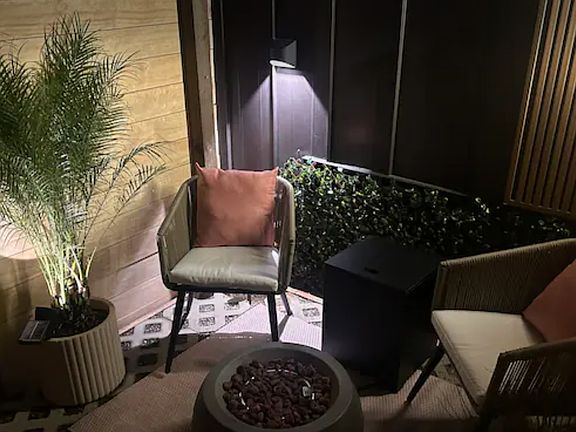 Tiny homeModern amenitiesStylish comfortOutdoor seating areaUrban oasis
