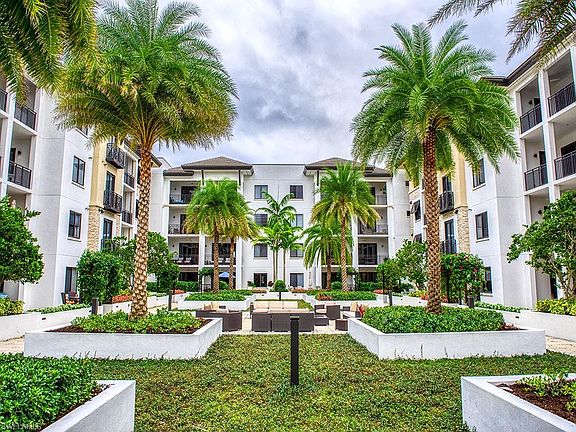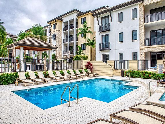 This beautifully decorated courtyard view, penthouse-level condo features too many upgrades to list! Key enhancements include hidden, electric 'blackout' shades covering all openings, custom lighting and ceiling fans, maximized closet storage by Contemporary Closets, and ceramic tile flooring throughout. Pocket doors provide 'second suite' privacy for guest bedroom/bath as well as the den (could be used as third bedroom). Kitchen with large island anchors the living/entertaining space with soaring 10' ceilings and 8' solid core doors. In-unit water filter/reverse osmosis system by Aqua, electric power to assigned parking space, and 'built-out' laundry room leave nothing to do, but 'move in.' Community amenities include a courtyard with a resort-style pool, spa, grills and fire pit. A "state of the art" on-site fitness facility, secured entry & under building parking make Naples Square perfectly livable! 2 blocks from 5th Avenue, 10 blocks from the beach! Residents also enjoy a beautiful club room & bar with billiards & large screen TVs. To replicate these upgrades/enhancements in Naples Square buildings III or IV on the penthouse level would cost well over $1.125 million!