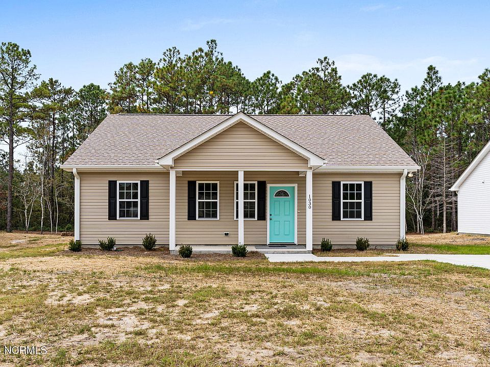New Construction away from all the detours. This one is move in ready. Open floor plan with vaulted ceiling in living room that flows nicely into the kitchen and dining area. Great for entertaining. Kitchen offer ample workspace and storage with additional of both in the upgraded island. Split floor plan for added privacy. Master bedroom has walk-in shower and large closet. Some of the upgraded features in this home include: LVP flooring throughout, recessed lights, ceiling fans in living room and all bedrooms, 9ft ceilings, full size laundry room, linen closet in hall bath, granite tops in kitchen and baths and stainless appliance package.