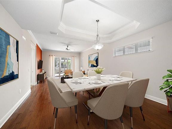 Welcome to Bellasol a premier luxury waterfront community in Apollo Beach! This second-floor corner condo offers the perfect blend of elegance, functionality, and coastal charm. Some pictures are virtually staged. Featuring 3 bedrooms, 3 full bathrooms, an oversized two-car garage (580 sq. ft.) This home is designed for comfort and convenience. The covered front porch provides easy access to both the elevator and stairs. A deeded boat slip with water/electric (max 32' boat) is available for an extra charge. Step inside through a solid wood front door and be greeted by an open, inviting floor plan with hardwood flooring throughout the main living areas. The formal dining room boasts a tray ceiling and crown molding perfect for entertaining. The great room is bathed in natural light from numerous windows and sliding doors that lead to the spacious rear balcony. The gourmet kitchen is a chef's dream, featuring wood cabinetry, granite countertops, stainless steel appliances, a stylish backsplash, double sinks, and a large island with bar seating ideal for hosting and socializing. The primary suite ,offers ultimate privacy with water views, a tray ceiling, crown molding, wood plank tile flooring, a spacious 10'x8' walk-in closet, and direct access to the balcony. The en-suite bath is a spa-like retreat, complete with a granite double vanity, soaking tub, and walk-in shower. Additional highlights include: A guest bedroom with a queen-size Murphy bed and private en-suite A third bedroom with an adjacent full bath A versatile office/study with custom floor-to-ceiling built-ins and French doors can be used as a 4th bedroom Ceiling fans in all bedrooms Cat5 network wiring throughout Kayak launch and marina access with no fixed bridges to Tampa Bay Bellasol amenities enhance the luxury lifestyle: a 24/7 fitness center, community clubhouse with rentable event space, bathrooms, propane grills, resort-style pool with hot tub, tiki bar, high-speed internet, and security cameras at the gated entrance. The oversized garage offers ample room for vehicles plus custom built-in storage. Water, trash, and internet are all included. Perfectly positioned between Sarasota and Tampa, and walking distance to top local restaurants (Finn's, Apollo Pizza, Cigar Bar) and the beach, this waterfront condo is more than a home it's a lifestyle. Enjoy quick boating access to Tampa Bay and compare the value you'll be amazed. NO storm damage. Schedule your private showing today!
