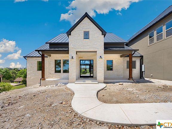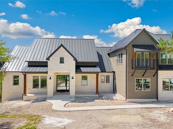 *** $15K Builder Incentive for Landscaping! *** Welcome to your dream home nestled on a sprawling 2.23-acre lot with peekaboo views of Canyon Lake at the end of a peaceful cul-de-sac in the coveted Mystic Shores subdivision. This contemporary Texas hill country masterpiece is a luxury custom new construction, boasting a sleek and modern design. This modern home features a striking pivot steel, glass front door, 2 living spaces downstairs and an additional living area upstairs and a separate office/study for utmost functionality. The main living room impresses with soaring cathedral ceilings, floor-to-ceiling fireplace, and 16-foot wide sliding glass doors that lead to a covered patio, offering breathtaking sunset views of the hill country. With an open floor plan, the living room seamlessly connects to the gourmet kitchen that is a chef's dream and features top-of-the-line finishes, including quartz countertops, GE Monogram 48" propane range, oversized refrigerator & freezer. With four bedrooms and four full baths, including a master spa-like ensuite with opulent shower, soaking tub, and a spacious closet with custom built-in shelving. The finishing touches, such as wood beams in the living room, luxury laminate wood floors, and herringbone brick flooring will add the perfect touch of warmth along with tall ceilings and 8ft doors throughout the home. Energy efficiency is prioritized with full spray foam insulation throughout, ESC windows, tankless gas water heaters, metal roof, and 8 ft insulated garage doors. Enjoy magical evenings on the spacious 1100 sf back deck oasis currently being added adjacent to the large covered patio. Located on the north side of Mystic Shores, residents enjoy access to Canyon Lake with boat ramps and lake-side parks, 2 community pools, sports courts, community boat, and RV storage, as well as nature preserves with walking and biking trails. Don't miss the chance to make this your forever home!