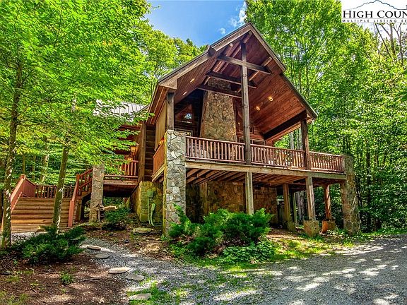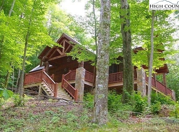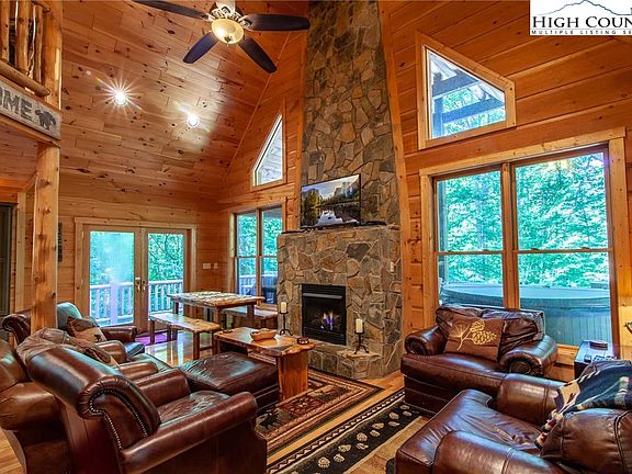 CASH COW!! True Log Cabin on Beech Mountain is being sold TURN KEY furnished. Located in Chestnut Falls this cabin has 3 Bedrooms and 2 full Baths with the Primary Bedroom on the main level with king bed. Primary bath has granite with a separate tub and walk in shower. Gorgeous kitchen with granite and stainless appliances Lots of room to cook. Bar seating for 3 in addition to the dining area off the kitchen that sits 6. Wood floors throughout and a stone fireplace in the living room. Soaring tongue and groove ceilings. Upstairs you will find 2 more bedrooms with a full bath with shower. The loft area has a game table and foosball table. Peaceful setting in the woods and OUT OF TOWN limits for LOW TAXES. Large wrap around deck with an outdoor wood burning fireplace and covered hot tub area. Great deck furniture and out door dining. LONG ESTABLISHED RENTAL HISTORY IN EXCESS OF $50,000 per year!! Come visit this idyllic cabin. Only 15 minutes to Ski Beech for skiing, snow boarding, mountain biking, Sky Bar and more. 5 minutes to Buckeye Rec Center with Pickleball, gym, basketball, boating, hiking and more. Or join the Beech Mountain Country Club with Golf, tennis, pool, fitness center, several restaurants and much more.