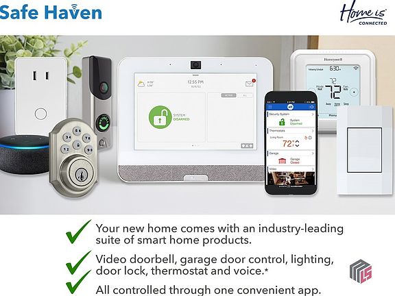 This home is eligible for the builder's incentive of lower interest rate using our preferred lender DHI mortgage and up to 10K in seller paid closing cost. Open the door to a dramatic double foyer that leads to an open concept ranch design with private bedroom suite featuring a spa-like bath and extra closet space. Expansive kitchen opens to family room with gas fireplace. Kitchen has granite counters, White cabinets with stainless steel appliances including double ovens. Versatile flex space on the main could be formal dining or keeping room. Plus, bonus guest bedroom and full bath up. And you will never be too far from home with Home Is Connected. Your new home is built with an industry leading suite of smart home products that keep you connected with the people and place you value most.