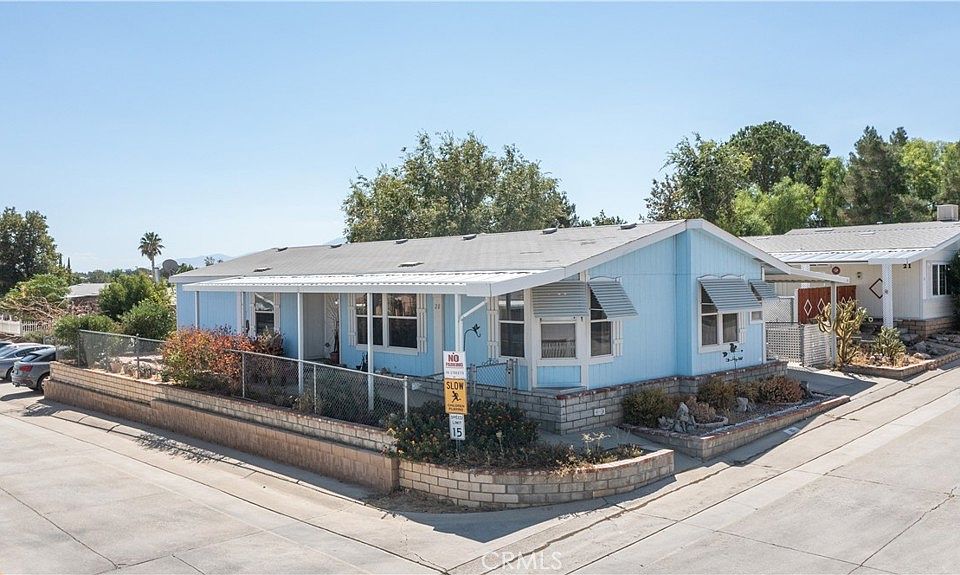 This beautiful manufactured home is located in one of Palmdale’s most sought-after gated mobile home communities, and as soon as you lay your eyes on it you’ll immediately recognize the owner’s true “Pride-Of-Ownership.” Here are just a few of its many other fine features: Its colorful planters, covered front porch, and complementary paint scheme enhance its eye-catching curb appeal. You’ll step into a flowing 1,680 square foot open concept floor plan that is in “Move-In-Condition” with ceiling fans throughout for efficient cooling, and easy care vinyl flooring. The spacious living room is bathed in natural light from a multitude of windows. The family’s cook is going to truly appreciate the kitchen’s skylight, abundant cabinets, ample tile counters, built-in appliances, sit down breakfast alcove, plus the convenience of the very large adjoining formal dining room. 3 bedrooms; The grand suite has a well appointed bathroom with dual sink mirrored vanity, soothing soaking tub and glass enclosed shower. A total of 2 bathrooms. Functionally located laundry area. Central heat & air for year-round comfort. Double carport. You’re going to enjoy the community’s club house, pool, sports court, and park .Close to schools, grocery stores, and the 14 freeway. Lower Lease: $650.