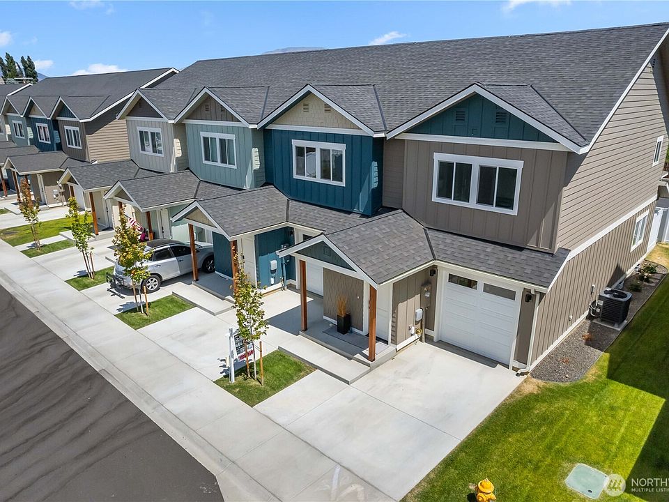 Welcome to Springwater Townhomes! Experience modern convenient living in the heart of beautiful Wenatchee. Enjoy an open great room with patio access, a bright kitchen featuring white quartz countertops, a walk-in pantry, and stainless appliances. Unit D2 offers two primary suites with private bathrooms, an additional powder room, and an attached garage. Relax on your back patio with morning sunshine and afternoon shade, and take in the stunning views of East Wenatchee's plateau and Wenatchee's Sage Hills from the bedrooms. Life is made easier with HOA fees including- Water, sewer, garbage, irrigation, landscape maintenance, snow plowing, & internet. Some photos are of the model unit.