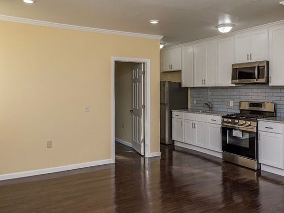 First Floor unit with 2 bedrooms, Living and dining, one bathroom, street parking and backyard. Stainless steel appliances, wooden floors throughout the house. Basement is available for storage for an additional fee. Tenant responsible for all utilities - Gas, electricity, water and heat. No smoking. Private parking for 3 cars and private backyard.