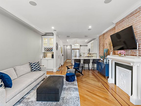 Welcome to refined living at 1030 Hudson Street, Residence 6 in Hoboken, NJ. This stunning two bedroom, two bathroom home is perfectly situated in one of the best locations in Hoboken, along the picturesque Hudson River waterfront and overlooking Elysian park. This home features a stunning fully updated kitchen with sleek, modern finishes, and a stylish wine bar, ideal for entertaining. Additional cabinetry was added under the island seating for maximum storage. Beautiful craftsmanship abounds with inlaid hardwood floors, exposed brick, and 10’ ceilings. The spacious living area offers a seamless blend of elegance and comfort, creating a welcoming atmosphere with historic charm. The primary suite has custom closet organizers and an updated bathroom. The second bedroom offers built-ins and ample space for a queen-sized bed. Enjoy the convenience of central air, in-unit front-loading laundry, abundant closet space, wifi-controllable Lutron dimmers, energy-efficient LED lighting, and surround-sound throughout.