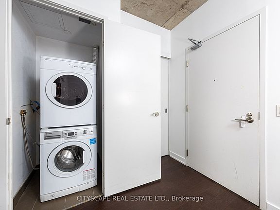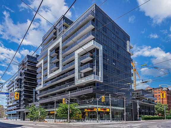 Beautiful and modern 1+1 suite in the heart of King West! This bright, open-concept home boasts soaring 9 ft. concrete and smooth ceilings. The spacious bedroom pairs perfectly with a versatile den, perfect for a home office or extra living space. While the sleek, modern kitchen with built-in appliances, sleek panel fridge, quartz countertops, and a stylish backsplash, along with a spacious center island for extra prep space. Enjoy floor-to-ceiling windows and a large balcony that invite abundant natural light. There is a bbq hook up on the large balcony to entertain guests. Live steps from a ground-floor supermarket (No Frills), dining, cafés, Liberty Village, and more. 24-hour concierge, fantastic amenities, Walk Score of 90, Transit Score of 91 . TTC At your Doorstep! Convenience at its finest!