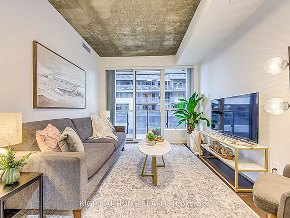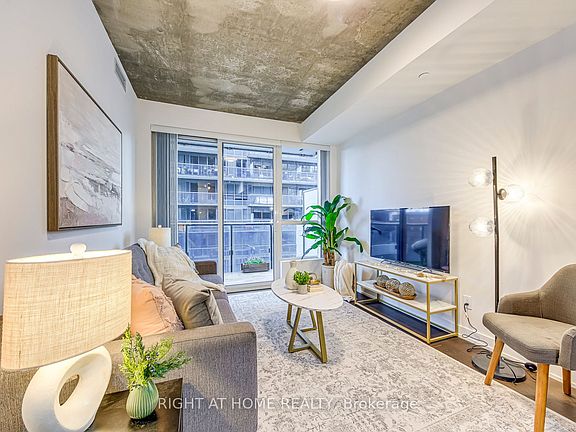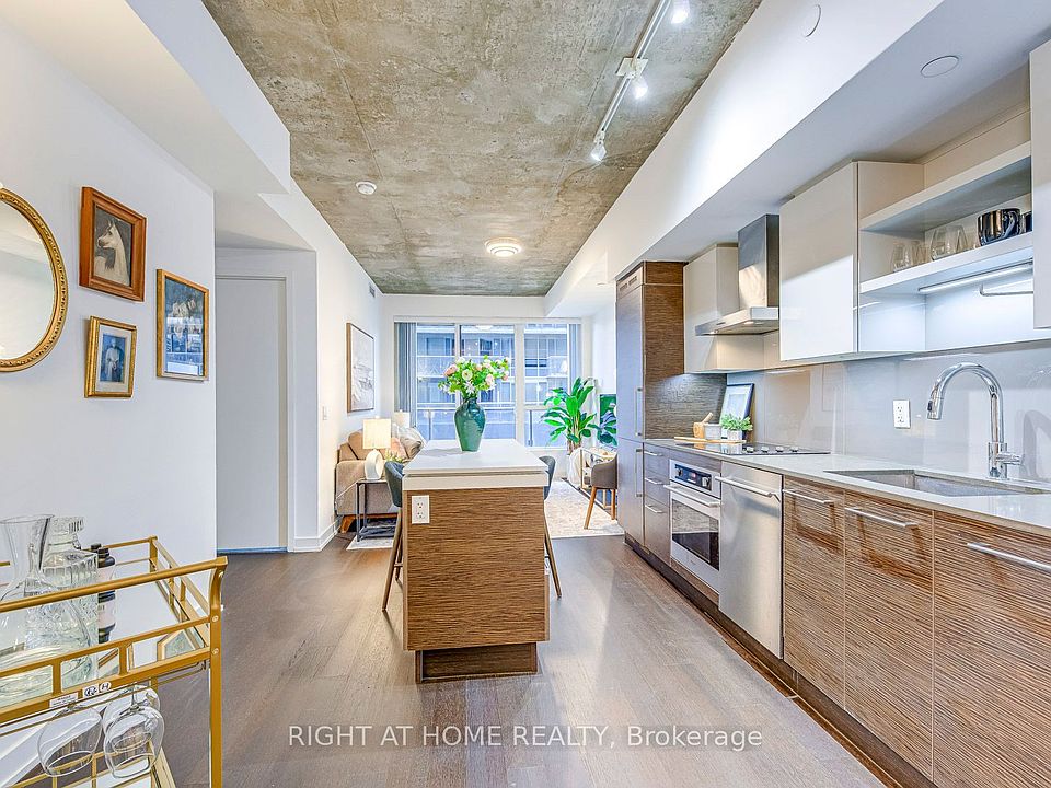 Live the King West dream! Impeccably designed unit built for sophisticated entertaining and effortless comfort. Soaring 9ft ceilings, exposed concrete ceilings and floor-to-ceiling windows . Chef-grade modern kitchen features a sleek centre island and integrated European-line appliances. Open-concept living flows to a private balcony. Generous primary bedroom with your very own walk-in closet. The ultimate flex space for a private den/home office. Premium finishes: granite counters and sleek backsplashes throughout. In-suite laundry. Unbeatable Location: Steps to Toronto's trendiest restaurants, bars, and shops. Coffee shop and grocery store right outside the lobby! Superb World-class amenities include a 24hr concierge, elite commercial-like fitness center, yoga room, theater, games room, multiple party rooms, and a breathtaking rooftop terrace with panoramic city views. Modern luxury, perfected!