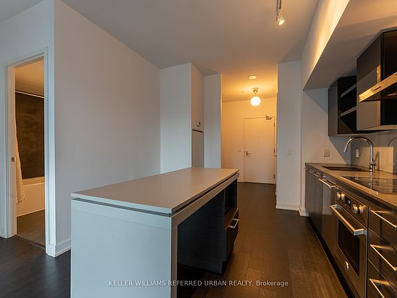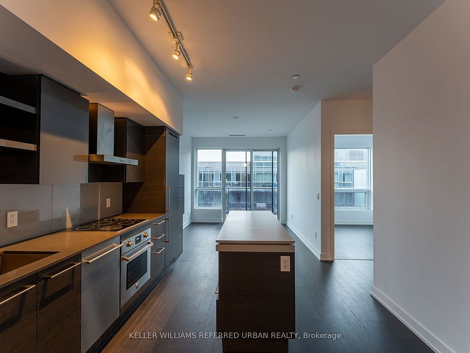 Beautiful 1+1 Penthouse Suite at DNA3! This stylish, contemporary unit offers 564 sq ft of well-designed living space with a huge balcony and 9 ft ceilings. Enjoy floor-to-ceiling windows, dark wood flooring throughout, and a sleek modern kitchen with integrated fridge, stainless steel appliances, and a breakfast island. Fantastic layout with amazing building amenities - gym, party room, rain room, and rooftop terrace with BBQs. Prime location with Loblaws and TTC right at your doorstep. 1 parking space included.
