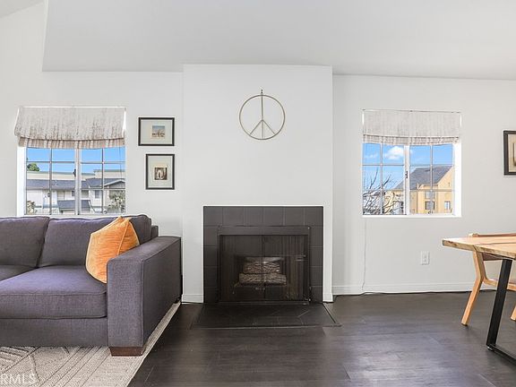 Introducing a luxurious top-floor, end unit filled with natural light! This 2-bedroom condo overlooks the community gardens and provides sunset views from the living room balcony. Enjoy the convenience of in-unit laundry, central AC, and the added convenience of two secure underground parking spaces. The expansive primary suite features vaulted ceilings, a generously sized full bathroom, and a walk-in closet, plus a lovely view of the community gardens. The second bedroom offers ample space, featuring an extra-deep wall closet for optimal storage. The 3/4 hall bathroom provides added convenience. Relax in the inviting living room, complete with a cozy fireplace and enjoy the ocean breeze on the balcony. The bright kitchen features brand-new stainless steel appliances and opens to the dining area. Don't leave without first enjoying the rooftop deck. Ideally situated near trendy restaurants and retail outlets, this unit provides convenient access to the beach and major freeways. Don't miss out on this rare opportunity for sophisticated coastal living—schedule your viewing today before it's gone!