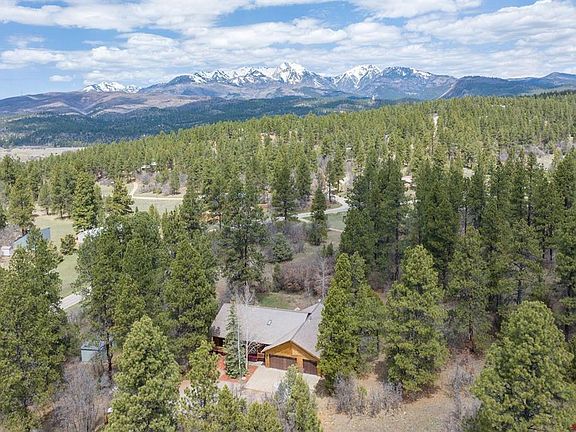 Gorgeous cedar sided ranch style home in the Rafter J neighborhood enjoys great privacy and views of the La Platas. This home is just a few miles to downtown Durango on paved roads. It was built by custom homebuilder Lowell Shafer as his personal residence and has an ideal layout consisting of 3 BRs and an office office plus a 3 car garage with workshop space. Recently updated with granite countertops and new appliances including a wine fridge as well as new hickory hardwood flooring. The great room has a vaulted tongue and groove ceiling and a gas fireplace. Master suite has its own deck with hot tub, fireplace, windows facing the La Plata mountains and a sumptuous luxury bathroom with new granite tops and dual sinks. Huge walk-in closet with built-in shelving. The 2nd and 3rd bedrooms are conveniently located on the opposite side of the great room allowing plenty of space between you and your guests. A sweet office space with french doors is accessed off the great room and has big windows bringing in plenty of natural light. Enjoy the outdoors on the covered front and back decks with log accents. Cedar siding and composition roof with brand new Carrier furnace installed in '23. Whole house is wired for speakers. Two convenient sheds offer plenty of storage. A 3-car garage is set up a with a partition wall separating the 1 car garage from the 2 car garage. There is additional storage space in the rear of both garages and has 220 V for the hobbyist. Although this home is in Rafter J area it is not part of the HOA so there are no pesky HOA and no dues. Plenty of room for cars, boats, campers and toys. Roads are county maintained.