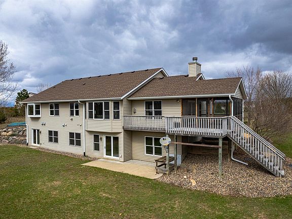 Beautiful, custom, single level living, 2-1/2 acres with view of Shank Lake in sought after Hudson school district. Far enough away for the breathing room you want, yet close enough to everything you need. Gorgeous, newly refinished oak hardwood throughout main level. Warm custom cabinetry, deep, rich granite counters; perfectly appointed kitchen. Two beds, 2 full baths, AND an office on the main - plus living, dining, 3 way gas fireplace, kitchen, mud/laundry - private master w/ ensuite and large walk in closet. Walkout lower has impressive wood burning fireplace in the large family room with new carpeting and tile. Heated floors on lower lvl and in master bath. Home has a brand new roof, gutters furnace & A/C! 3 car garage, deck and a sunroom off the kitchen to enjoy your morning coffee or unwind and enjoy the view at the end of your day. Schedule your tour today!
