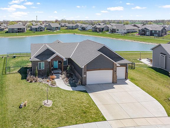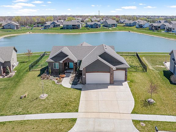 Welcome home to this stunning 6 bedroom ranch with breathtaking panoramic water views from almost every window and complete with a great open floor plan for easy entertaining. Lovely living room that welcomes each guest with wood flooring, large windows to bring in natural light, and neutral décor to go with any decorating ideas you may have! A gorgeous light and bright kitchen featuring an island with Quartz countertop and breakfast bar, gas stove, built-in microwave, walk-in pantry, recessed lighting, tile backsplash, and dining area with large windows with an amazing water view, chandelier, and a sliding door to the covered deck to make summer barbecues a breeze. Spend restful nights in this primary bedroom complete with carpeting, trayed ceiling with ceiling fan, large window with a water view, and a private bathroom with tile flooring, double sinks, tile shower, linen closet, and walk-in closet! To complete this main floor is two bedrooms, a full bathroom, and a convenient laundry room with built in mud bench, cabinet and rods. Hang out in this finished basement that features a spacious family room with recessed lighting, view out windows, and even plumbed for a wet bar! The concrete flooring is ready to be finished with your touch! Three additional bedrooms with windows, recessed lighting, and a full bathroom complete this lower level. Sit back and relax out on the east facing covered deck that overlooks the breathtaking views of the water and expansive backyard with fencing, sprinkler system, and a community walking path. Interior walls were recently painted on the main floor. Truly a place for you to call home! Do not miss this opportunity!
