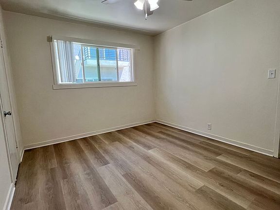 Remodeled homeModern cabinetsNewly updated kitchenNew laminated flooringClean tile flooringSleek stainless steel stoveLarge bedroom