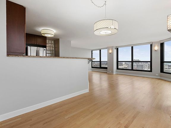 Unveiling a rare jewel in the heart of the Gold Coast neighborhood is this exquisite two-bedroom, two-bathroom northeast corner unit at Newberry Plaza. Located on the thirty-first floor, this home invites prospective dwellers into a realm of sophistication and convenience.The open concept kitchen is a testament to modern design, featuring stainless steel appliances, a breakfast bar, and a charming eating area for easy entertaining. Every room unfolds with breathtaking lake and city views, a mesmerizing spectacle that offers a captivating backdrop for city living and entertaining. Hardwood floors flow throughout the property, seamlessly melding with built-in closets and tastefully renovated baths. Among its distinguishing features, a private balcony offers a haven for delightful sunrises over the lake. A full-service building, Newberry Plaza is high rise living at its finest. Boasting a 24/7 doorman, on-site management, and dedicated maintenance staff. Further enhancing your living experience are an outdoor pool with sundeck and exercise and multi-purpose rooms. A receiving room, service elevator, and additional storage on the same floor as the unit present a lifestyle of exceptional convenience. Nestled in the prestigious Gold Coast area, this home is surrounded by the best restaurants and shopping Chicago has to offer.