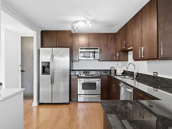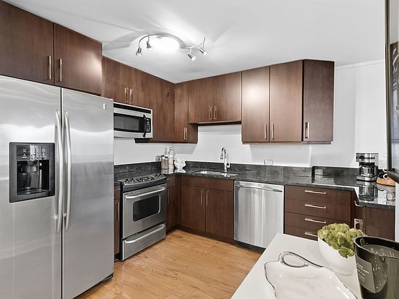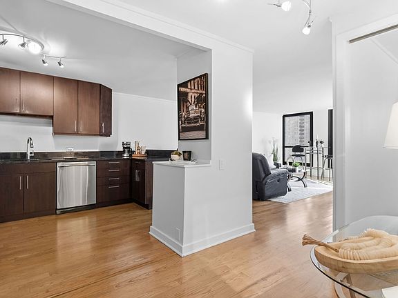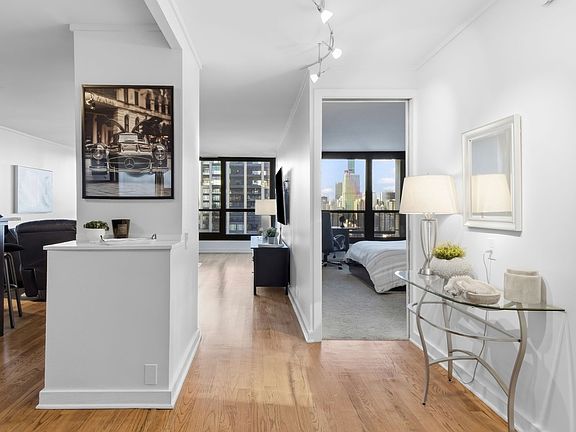 You truly can have it all! Dripping in style and filled with natural light, this freshly painted, move-in ready gem sparkles with site-finished hardwood floors and oversized windows framing dramatic skyline, lake, and sunset views. The reimagined kitchen stuns with espresso cabinetry, granite counters, custom hardware, a raised breakfast bar, and convenient beverage fridge. Perfect for entertaining or relaxing evenings in! The bedroom boasts impressive dimensions and a generous walk-in closet, large enough to host your entire wardrobe. Retreat to the spa-inspired bath, complete with a hard-to-find dual-sink vanity, fogless mirrors, and a frameless shower pre-plumbed for a steam feature. Step onto your private balcony and take it all in...the views, the energy, the beauty of Chicago! Newberry Plaza delivers a true hassle-free lifestyle experience with 24-hour door personnel, on-site management and maintenance, fitness center, outdoor pool, sundeck, conference room, bike and package rooms, and pickup dry cleaning services. HOA fee includes heat, air conditioning, water, garbage, recycling, cable, high-speed internet, gym, and storage (electricity is billed separately). Leased parking is available in the building. Strong reserves and no planned special assessments - the lobby, hallways, and exterior facade were all recently updated. Ideally located in Chicago's iconic Gold Coast neighborhood, this residence puts you at the heart of the city's most sophisticated living with world-class dining, designer boutiques, premier nightlife, and the bustling charm of Mariano Park right outside your front door. Enjoy easy access to Michigan Avenue, the lakefront, public transportation, grocery stores, parks, coffee shops, and more! The building's pet policy only allows cats & service dogs. Schedule your tour today and see for yourself why it's the ultimate place to call home!