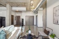 Industrial-chic vibeGas rangeLarge windowsSleek kitchenWest-ward facing juliet balconyOpen-concept spaceAmple counter space