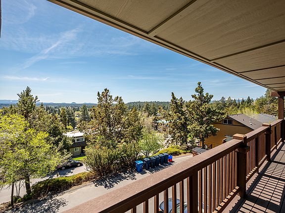 Unbeatable value on Bend's Westside with a Mt. Bachelor view! This beautifully updated 2-bed, 1-bath top-floor condo in Awbrey Butte blends comfort, style, and convenience. Enjoy natural light, mountain views, and sunsets from your private south-facing deck. The 680 sq. ft. layout features bamboo floors, high-end carpet, new blinds, and an upgraded kitchen with Richlite counters and Frigidaire appliances. Updates include a remodeled, tiled bathroom and relocated washer/dryer for better flow. Move-in ready with portable A/C, 2 parking spaces, and 2 storage lockers. HOA covers water, sewer, garbage, and snow removal. Steps from COCC, Hillside Park, Newport Market, and trails—ideal for outdoor lovers—with easy access to downtown Bend and just 20 minutes to world-class skiing at Mt. Bachelor!