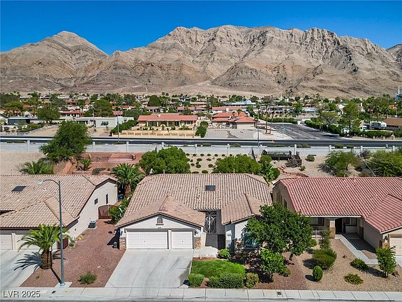 Upgraded features of the home include a three car garage, an attic air purifier, radiant roof barrier, water conditioner, and a tankless water heater for efficiency. This home was designed with comfort in mind, featuring two AC units with independent thermostats. Outside you will find a covered patio and an elevated backyard with sweeping 180 degree Strip and city views—a true highlight of this property. This home is turn key and move in ready!