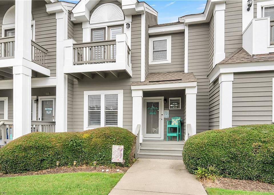 Coastal Townhouse with Bay Views - Walk to Buckroe Beach! Live steps from the sand in this beautiful townhouse featuring stunning Bay views and unforgettable sunsets from your private balcony. Highlights include: Quartz countertops, stylish backsplash & beverage cooler, Plantation and Bahama shutters for charm & privacy, new LVP flooring, shiplap accents & glass-bottom gas fireplace, two spacious bedrooms, each with a balcony & full bath and custom staircase treads, ceiling fans & generous closet space. Extras: storage shed, water softener, and Ring doorbells. The second bedroom fits two queen beds with room to spare! Don't miss this coastal gem -- it will not las long!