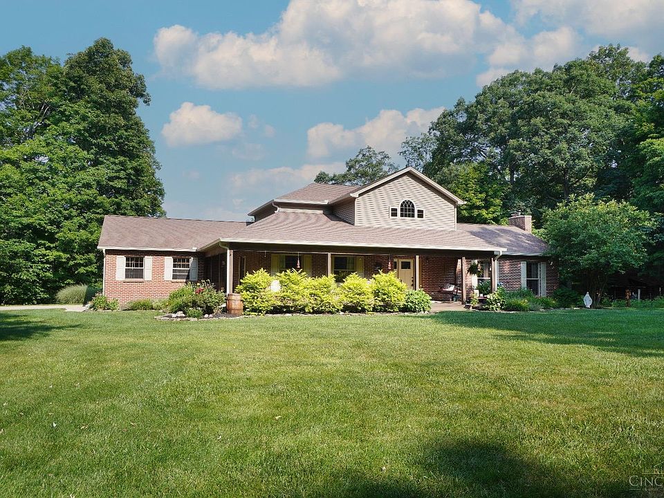 Gorgeous home sitting on your own slice of heaven! Inviting, large front porch. 3 bedrooms, 4 baths (2 full/2 half) plus versatile bonus rooms. Huge great room with handsome stone fireplace & breathtaking views of the picturesque half-acre pond with waterfall! Striking custom kitchen with walkout to generous screened-in porch. Step outside to the spacious patio and relaxing hot tub. Perfect home for entertaining in your backyard oasis. First-floor primary bedroom and laundry make for convenient living. Finished lower level extends the living space with an expansive family room and recreational room. Detached garage for extra parking and/or storage. Minutes to the highway. Every need is met with this beautiful home. Make it your own!