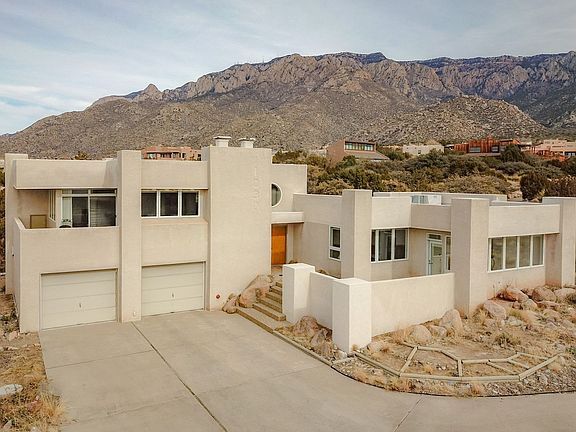 Modern Open airy 3900+ tri-level home located in the highly desired Sandia Heights subdivision. Spectacular 360* City and Sandia Mountain Views! Double door entry leads to two amazing living areas with raised beam ceilings, 20' vigas, ceramic tile entry floors, corner gas fireplace, ceiling fans, exterior upper and lower decks, open dining, kitchen with island gas cook top, double ovens, loads of cabinets, built-in breakfast nook and morning exterior deck! Three/four spacious bedrooms lower level could be used as office has fireplace and room for exercise equipment. Master Suite with breathtaking views, huge walk-in closet, jetted tub, separate shower and glass block accents and private balcony. The home is to die for, natural xeriscaping, with pathways, bike trails, all around the corner! Tenant pays all utilities, and renters insurance. NO Smoking please.