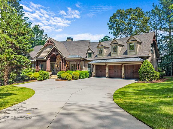 OWNER FINANCING AVAILABLE. Fully furnished, beautiful lake home nestled on almost two acres of property offering quality craftsmanship and details, steps from the boat dock with TWO ASSIGNED BOAT SLIPS. Designed to elevate your lifestyle , this home features 6 bedrooms, 6 full baths, and 2 half baths, and is ideal for both luxurious everyday living and memorable entertaining. The main level welcomes you with an expansive open floor plan, adorned with hardwood floors, wood beams and custom millwork throughout. A striking stone gas fireplace anchors the great room, while the formal dining area and open large kitchen create a space that is as functional as it is beautiful. The kitchen boasts an extra-large island, WOLF stove and ovens, a Sub-Zero refrigerator, and a bar area. Adjacent to the kitchen is a keeping room and a secondary dining area which opens to a spacious outdoor deck. The main level features a luxurious primary suite with a spa-like bath that includes heated floors and dual walk-in closets. A second bedroom with a full ensuite bath is also on the main level for convenience and comfort of visiting family and friends. Above the garage, a large private guest suite provides a tranquil retreat with a generously sized bedroom and full bath. Ascend to the terrace level via elevator designed for entertainment, offering an expansive family and game room, a full bar and a climate-controlled walk-in wine cellar that holds approximately 1,500 bottles. Three additional large suites each with private baths, and an additional half bath complete this level. Step outside to the covered stone patio, which overlooks the lake, perfect for outdoor gatherings and relaxation. This exceptional home is a rare find with almost two acres providing privacy and future opportunities for a pool, outdoor kitchen and even a pool house. There is a nature walking trail in the beautiful backyard. Located near Reynolds’ main entrance, shopping center, hospital, the Ritz Carlton and other community amenities, this home is move-in ready. Membership is available.