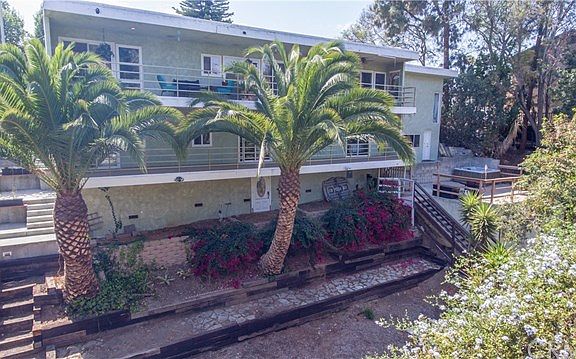 This beautifully presented contemporary home is sure to impress with over 2500 sf feet of living space and sweeping canyon views from every room. It features 3 bedrooms, 2.5 bathrooms plus den and bonus room. The reverse floor plan highlights the lush canyon setting. It enjoys a large remodeled kitchen with granite counters and center island combined with dining area for easy entertaining, wide-open living room, powder room and peaceful master bedroom suite on entry level. The lower level accommodates two generously sized bedrooms plus a den - well suited for office or lounge. The step down bonus room is the perfect hideaway, 4th bedroom or other creative space. Two balconies extend the entire length of the home making indoor/outdoor living easy - serving as a considerable extension of living space, introducing abundant natural light and providing a bird's eye view of tropical park-like backyard and canyon. This well-maintained home exudes pride of ownership throughout with recent upgrades such central heating and air conditioning, wood laminate flooring, timed sprinklers, windows and sliding doors, copper plumbing, hard-wired alarm system and so much more. Located on a quiet, desirable street in Vista Del Oro, this home is walking distance to charming Weymouth Corners Shopping Center and iconic Averill Park.