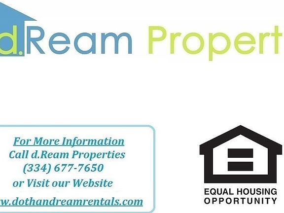 1b/1b Apartment, Stove, Refrigerator, Dishwasher, W/D Connections - Lawn Service, Pest Control, Garbage Service Provided. For More Infortmation Visit www.dothandreamrentals.com or Call d.Ream Properties at (334) 677-7650.